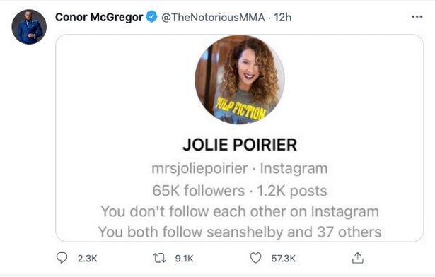 09 Jul 2021 1435. CONOR McGREGOR has shared proof of Dustin Poiriers wife Jolie sliding into his Instagram direct messages as he upped the mind games ahead of their trilogy bout. Conor McGregor has shared DM screenshot suggesting a message request from Dustin Poiriers wife.
